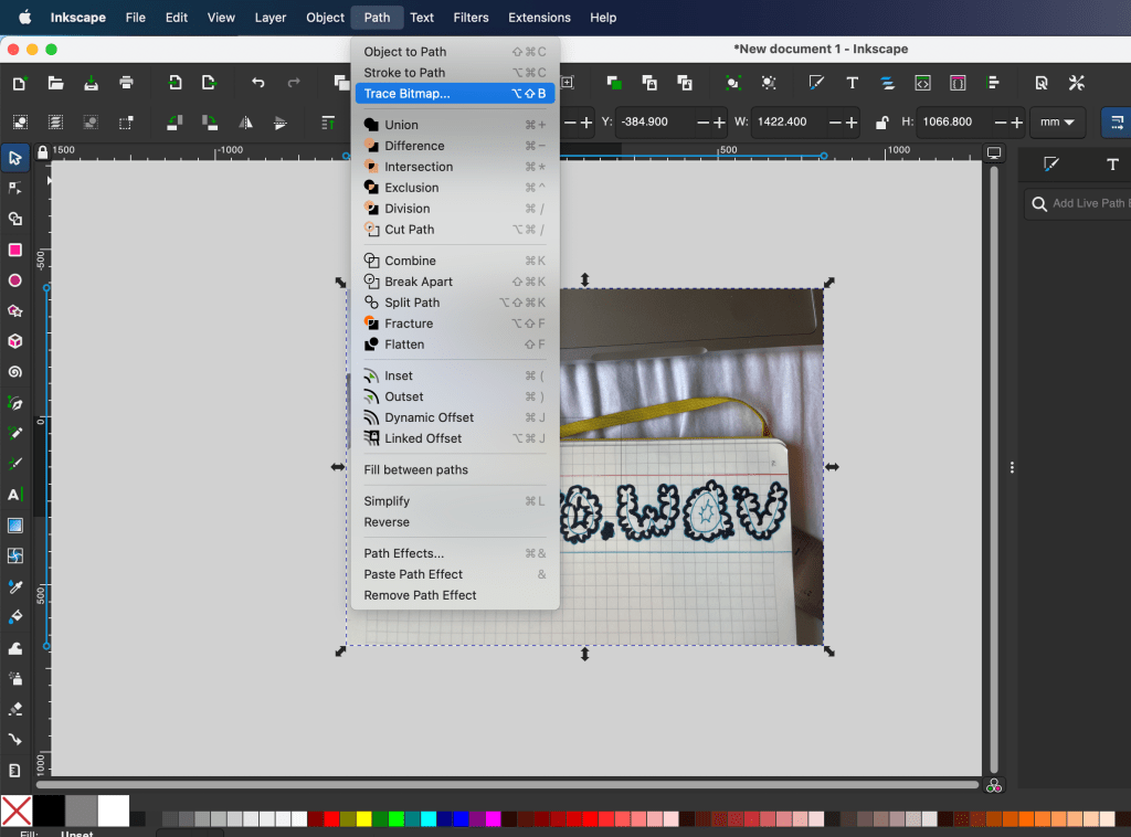 3. In inkscape, select your image and go to Path->trace bitmap: