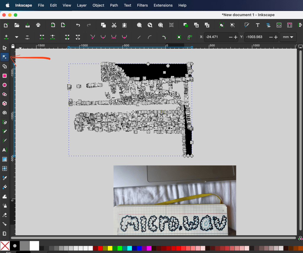 2. take a picture and drop it into inkscape. If you took a picture on your phone, you have to convert it to a jpeg first – to do this (on a mac) open the .heic file in preview, go to File->Export, and then in the export window change the format to jpeg